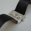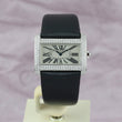 An unworn Cartier Tank Divan in 18kt white gold with a classic brilliant cut diamond setting. Unique sunburst dial with Roman numerals. This extremely rare watch is from our stock and has never left the store.