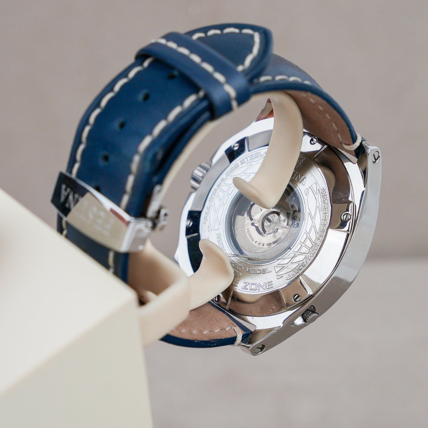 This watch is part of our old stock (New Old Stock) and has never left our retail store. At most, it was made available in the store for fitting and is otherwise in mint condition. The watch may nevertheless show signs of storage due to the partial decades of storage, which are visible in the pictures or stated in the description. Of course we subject all NOS watches to an inspection before sale to ensure functionality.