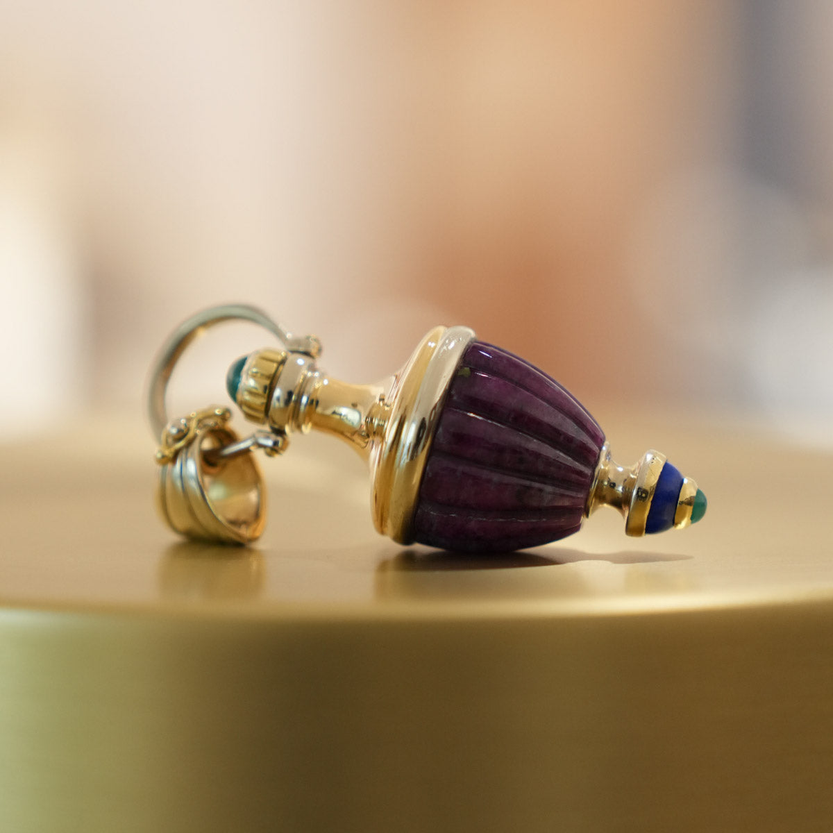 Parfum-Flakon-Anhänger aus Gold und Rubellit